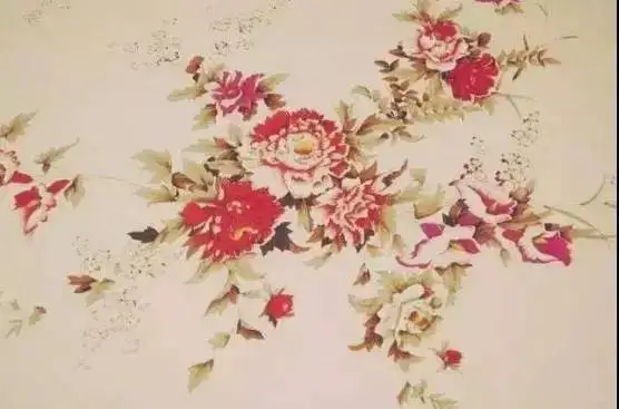 淡黄色印有牡丹花的“国民床单”